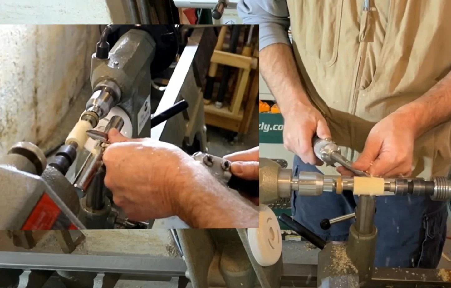 Next, glue the tubes into the blank and set it aside to dry. Once it’s dry, head back to the lathe. Use a barrel trimmer to face off the blank and cut it to the size of the tube. This ensures a clean, flush fit for your keychain.