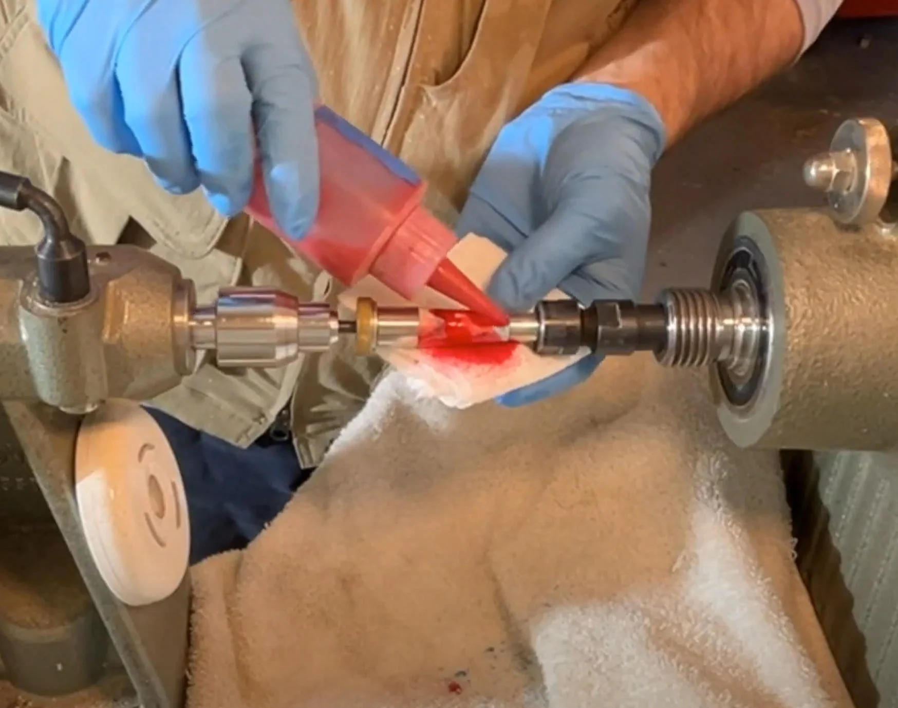 Now that your piece is finished, it’s time to polish. I use micro mesh pads or Mirca Abralon pads, starting around 500 to 600 grit and wet sanding each layer. Run your lathe at 2,000 RPMs, applying very light pressure. After every couple of grits, I sometimes apply an additional coat of CA glue for an ultra-smooth finish. Continue polishing up to 12,000 grit, then finish with a small amount of CA polishing cream.