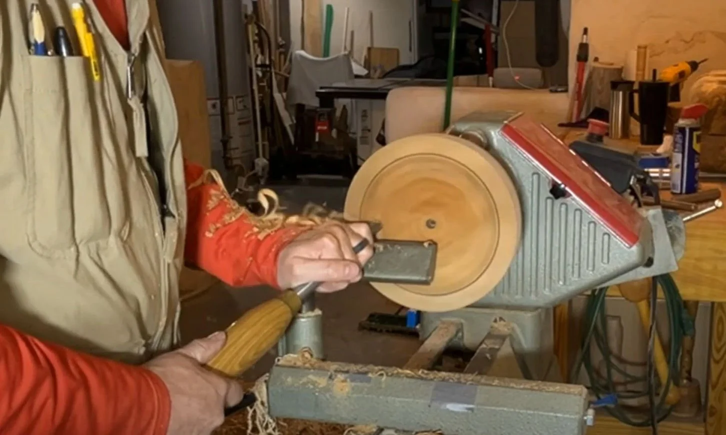 Once the tenon is set, I work on the overall shape of the bowl. For this particular project, I’m aiming for a specific size, so I mark out my intended diameter, leaving extra thickness to account for future drying and reshaping. Starting from the top of the bowl, I gradually work my way down, ensuring the bowl’s size and shape meet the intended specifications.
